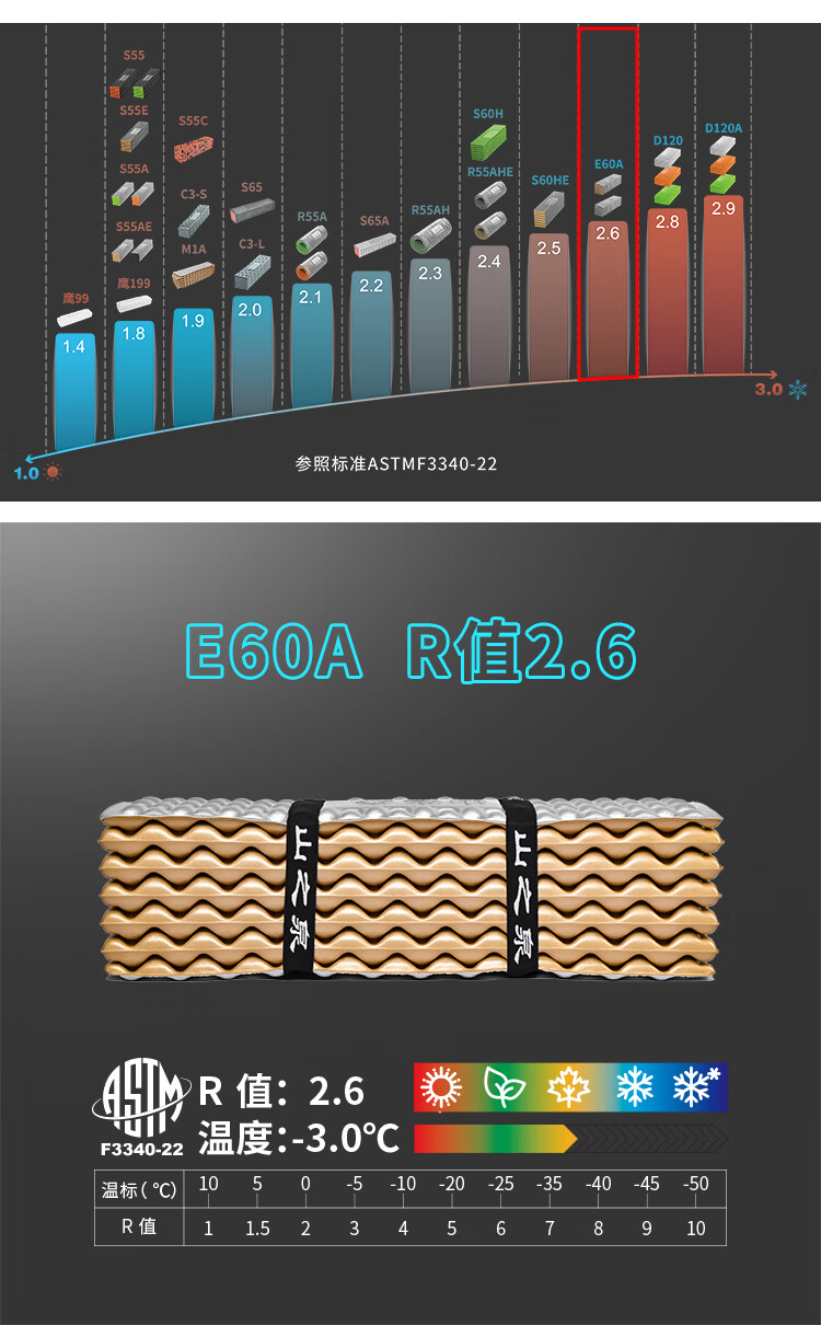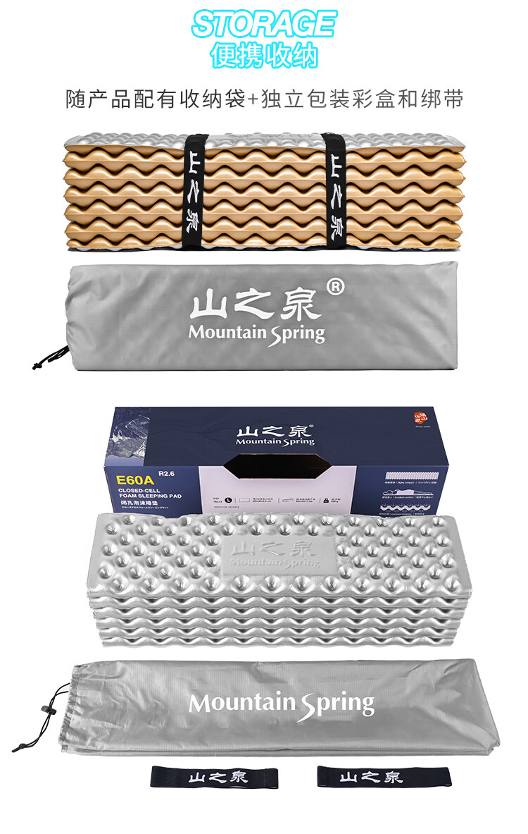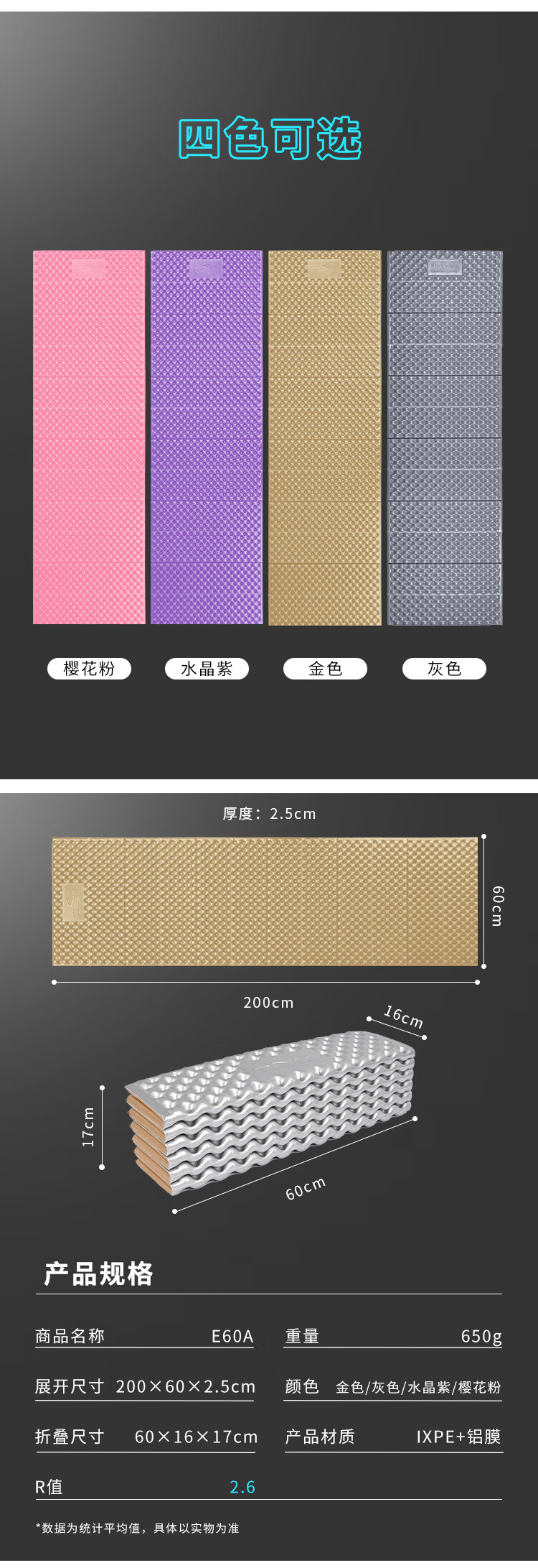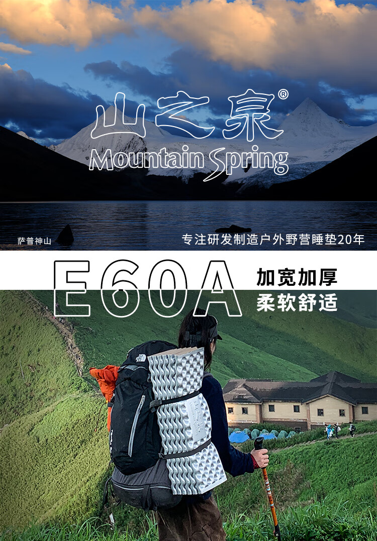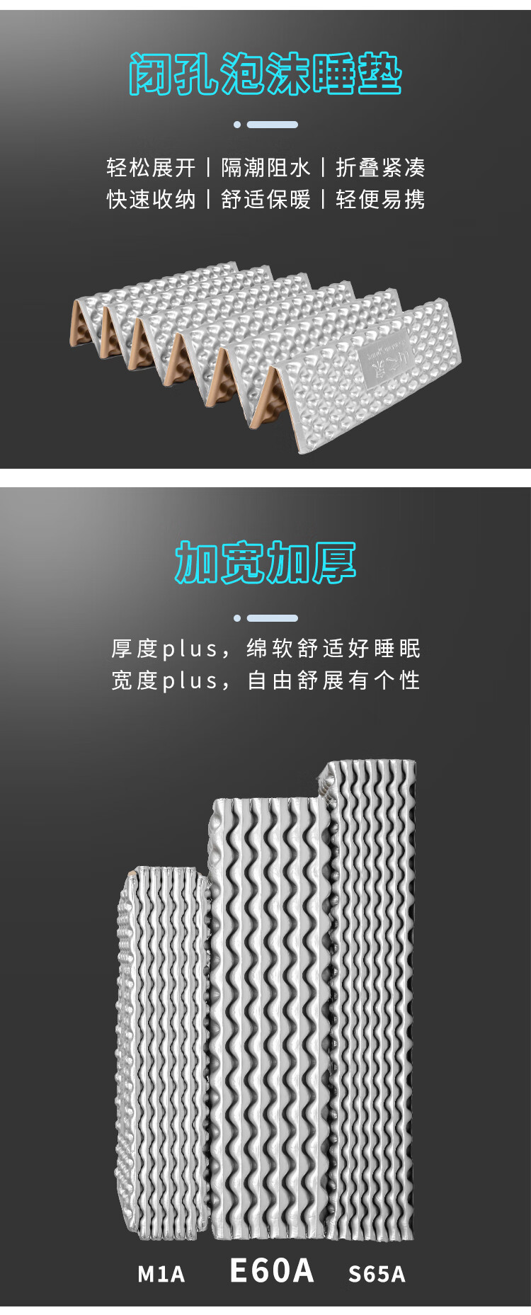 山之泉山之泉e60a蛋巢垫r2.6加宽加厚保暖铝膜户外野营睡垫200x60x2.5cm E60A灰色-200x60x2.5cm