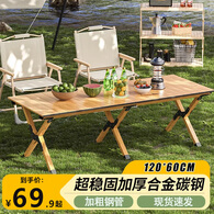 野徒者蛋卷桌户外折叠桌露营野餐桌子户外摆摊便携小桌子折叠餐桌 【原木色】120*60超大号桌