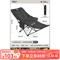 原始人户外折叠椅月亮椅露营椅子钓鱼沙滩椅便携式午休躺椅野餐凳 加长黑色-三档可调 脚托可拆
