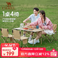 骆驼(CAMEL)户外折叠桌碳钢野餐桌子露营桌装备蛋卷桌套装野外野营桌椅 3654B