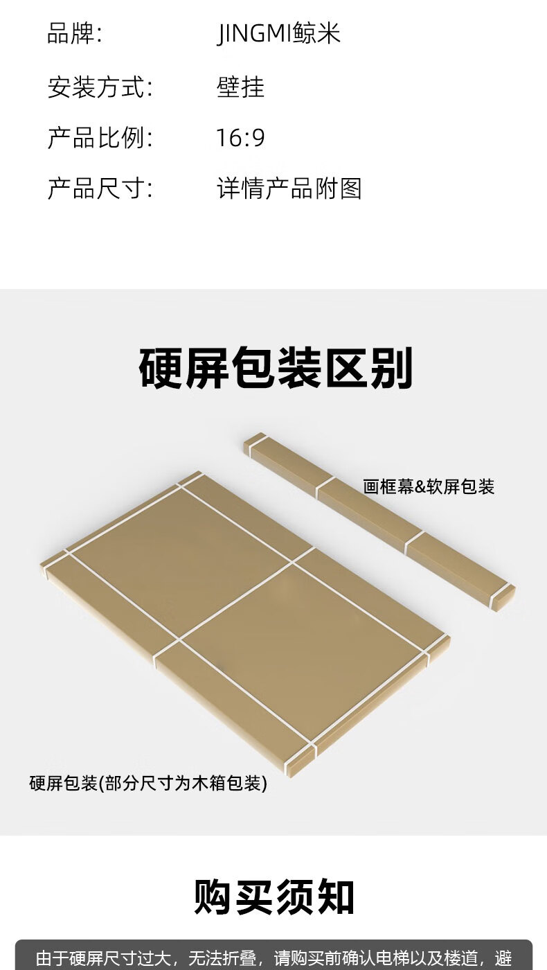 鲸米(JINGMI)投影幕布菲涅尔抗光幕布光子硬屏画框幕布高清家用中长焦/超短焦激光电视壁挂客厅卧室投影机屏幕 超短焦菲涅尔抗光软屏J2S 120英寸16:9(包安装)