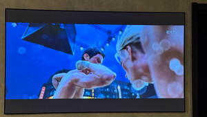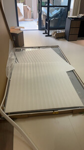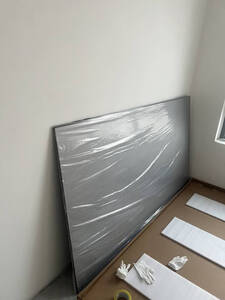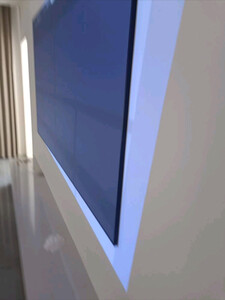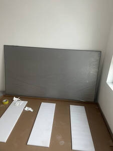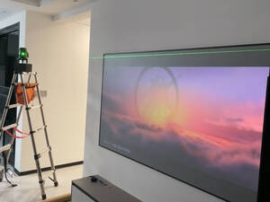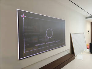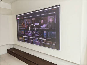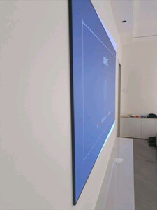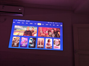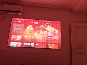 卡着电梯送进来了,先检查一遍屏幕没有问题,然后又装回去。丢在阳台边上等了半个月后,客厅墙干了才让客服给我安排师傅安装的!师傅技术不错,装上水平仪测很方正,投影效果也很好,开着灯测试效果,非常清晰!很棒!