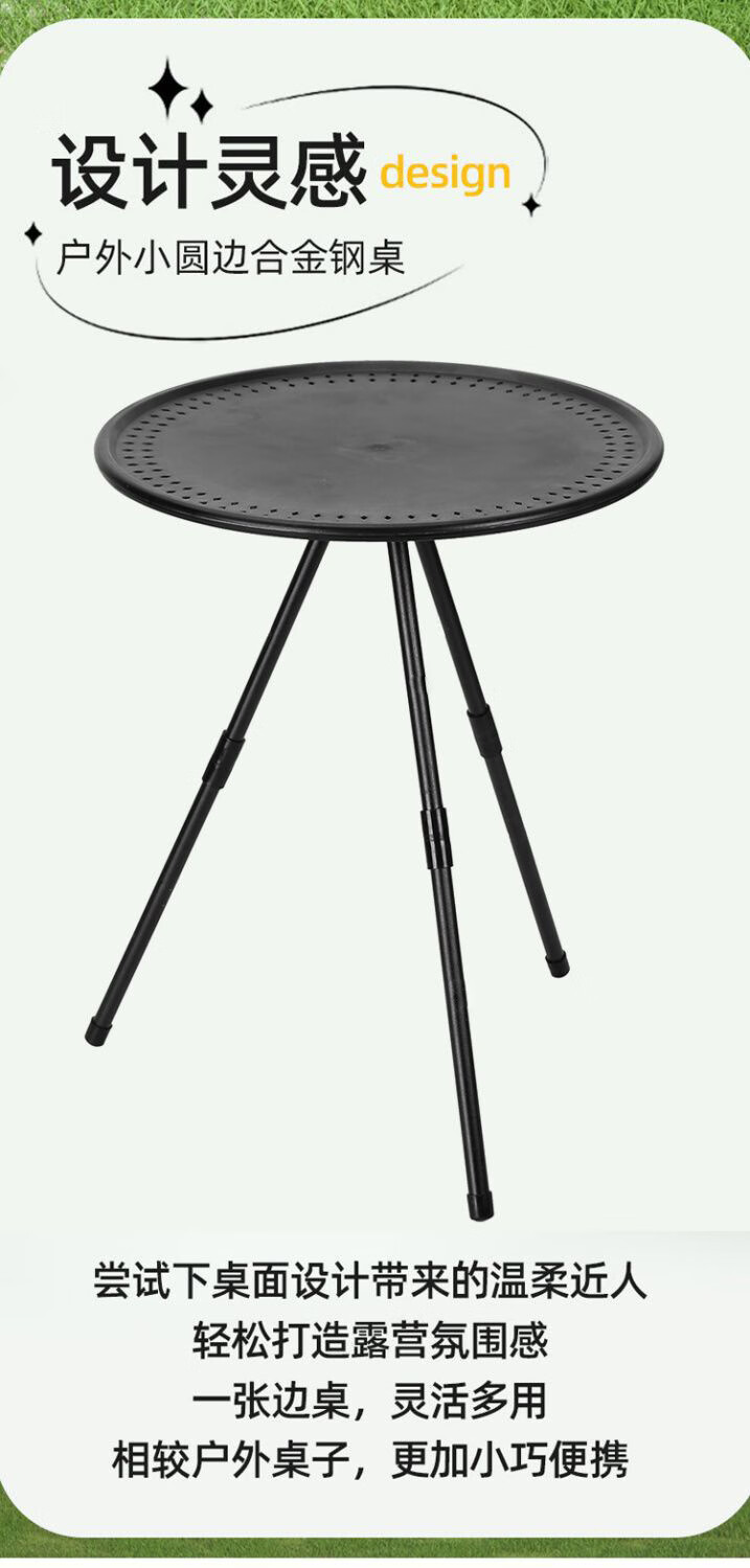 桌边圆润,小细节处理的很好,轻便稳当,收纳起来不占地,露营携带也方便