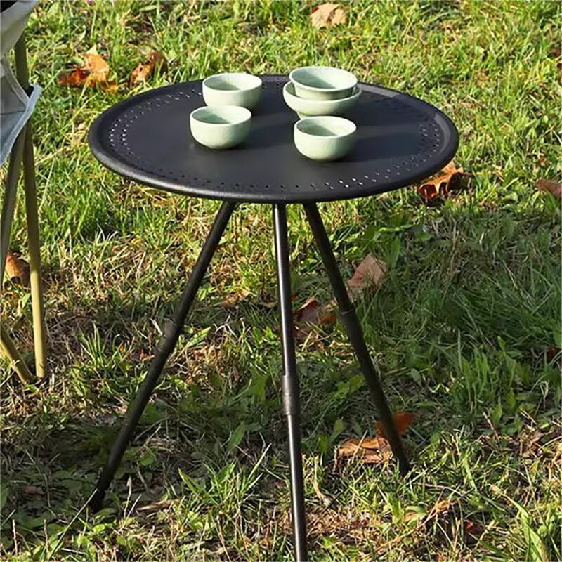 black dog户外折叠露营桌铝合金小圆桌超轻便携式野餐装备用品套装茶几 便携小圆桌_夜幕黑