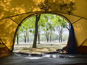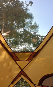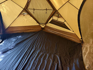 非常好看!!! 搭建不难,第一次开帐两个人搭,用了半小时,之后再搭应该能更快! 使用感受:中号帐两到三人使用够了,不压抑,很通风!这个颜色的光影非常漂亮!帐篷支起来后引来很多人围观拍照 容纳人数:2~3人 透气效果:非常好
