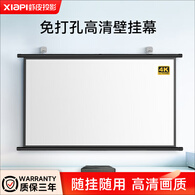 虾皮 投影幕布手动壁挂幕家用挂钩免打孔4K高清投影布移动便携贴墙影机简易幕布卧室客厅投影仪屏幕布 白玻纤 增益升级60吋16:9 免打孔壁挂幕布