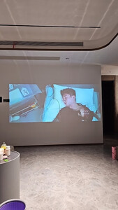 第一次买投影仪,效果让我很惊喜!图片是直接投白墙上,最大尺寸,自带的自动对焦和自动梯形矫正太方便了!投影仪可直接观看视频,但绝大多数都需要开通额外的会员才行,我都是用手机投的屏,需要在投影仪下载对应的电视APP才可以投1080P的,图一是酷喵《哪吒之魔童降世》,图二是芒果TV《花儿与少年》,图三图四是系统待机屏保,不得不夸一下这个屏保,每一张图片都很好看,有的屏保还有声音,比如图三会有雨声,都是白噪音,非常的治愈!第一次写那么长的评价,不仅是因为有晒单赠品,主要是因为真的很满意,性价比超高!