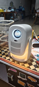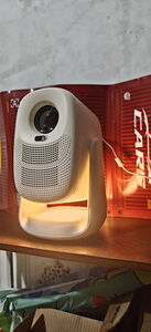 这个价位段的投影,亮度属它最牛了,投影还可以左右翻面,然后还有夜灯,还能旋转!外形大气时尚,支座很牢固,遥控器好用电池安装也方便,画面亮度够用很鲜艳,内存够用操做很流畅,运行声音不大音响声音可以带耳机沉浸感很强!