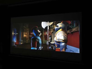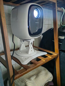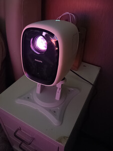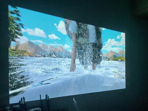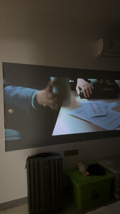 机器小小的 放在家里角落位置刚好 买来就用了直接投射到墙面的 画质还是很好的 每次开机自动对焦 可自动也可手动 操作非常方便 音质也可以 非常不错