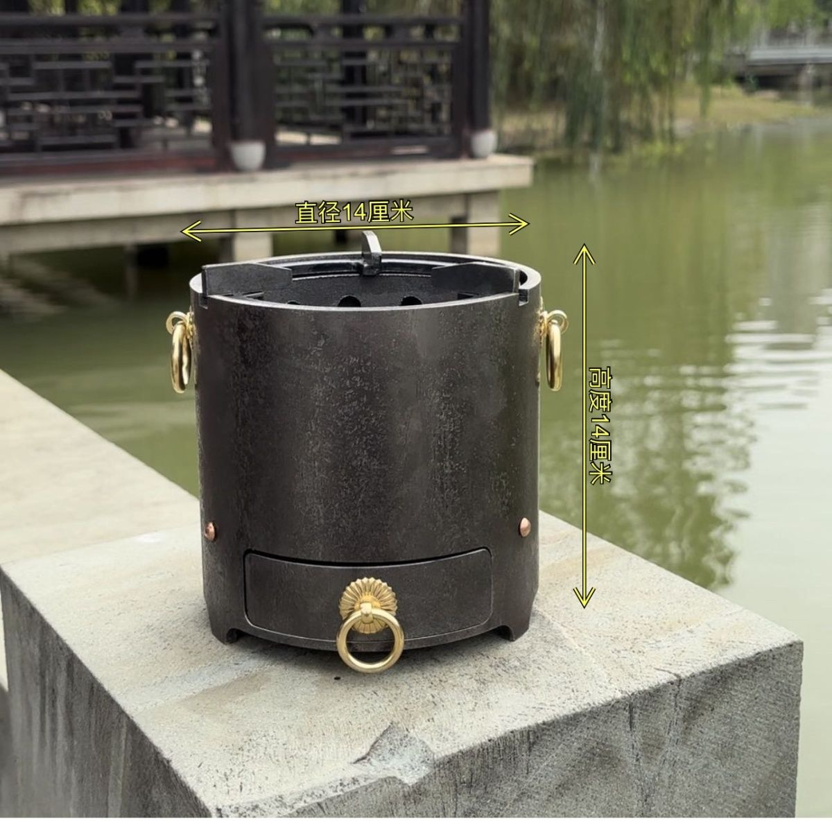 葵冠多功能烧水茶炉火锅炉碳钢茶水炉户外家用煮茶炉烧烤炉便携式铁炉 精品圆炉