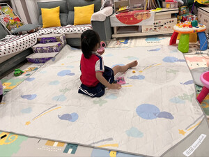 很快就收到啦,把这个垫子铺在客厅试了下,很软,比想象的舒服多,孩子玩的很开心,家里面有孩子的可以闭眼入,屁股坐着也舒服,待周末出门野餐的表现