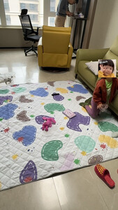 垫子很厚实,宝宝在上面玩玩具什么的很方便,带出去野餐也足够大,放水果零食都很百搭!颜色很卡通,舒服的配色,防水防尘,清理很方便。 质量非常好!方便收纳!比较厚实 坐着躺着都很舒服!这家的品质真的没话说!推荐购买。