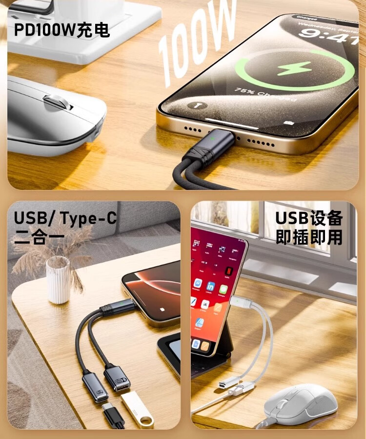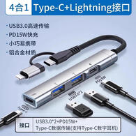 AORO 适用iPhone17/16/15/14Pro拓展lightning扩展硬u盘爱派转换器ipadair平板坞苹果转3.5U盾转接头 Type-c接口+苹果接口【多功能四合一】 0.15m