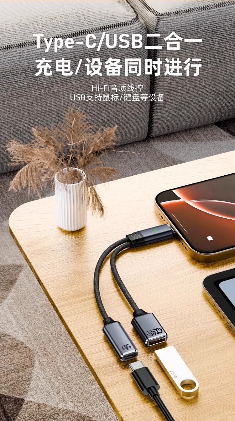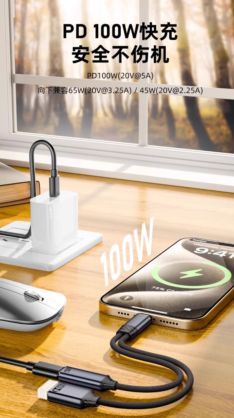 得语苹果15平板ipad pro2021转换器双type-c口2020 air5 mini6 air4华为转接头耳机充电二合一吃鸡小米