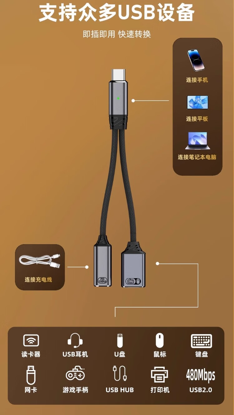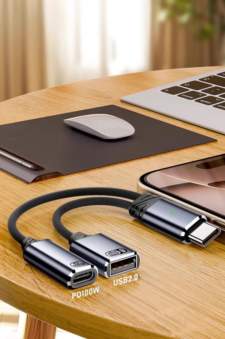 奥兰尼像素蛋糕联机线otg转接头供电iPad平板苹果17手机typec一拖二分线器适用于索尼佳能接一分二分线器 Type-C一分二C口供电+C口【深空灰】