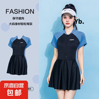 骆穂豆泳衣女胖MM保守遮肚显瘦连体裙式泡温泉游泳泳衣 水墨兰 2XL(建议120-140斤)