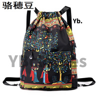 骆穂豆折叠旅行包束口袋双肩包女轻便简易抽绳收纳包大容量运动健身包男 数下