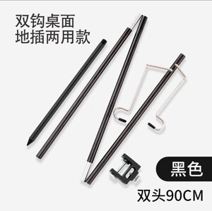 Guide Series铝合金户外灯架野露营折叠桌边灯杆支架伸缩杆挂小灯单钩挂灯野外 桌边二节单钩灯架-黑色