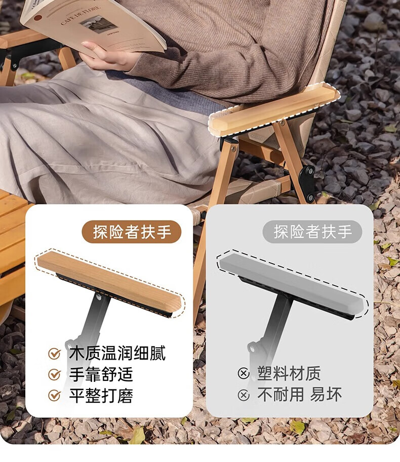 牧高笛(MOBIGARDEN)实木椅 户外露营野餐便携可拆卸实木折叠高躺椅云逸 象牙白