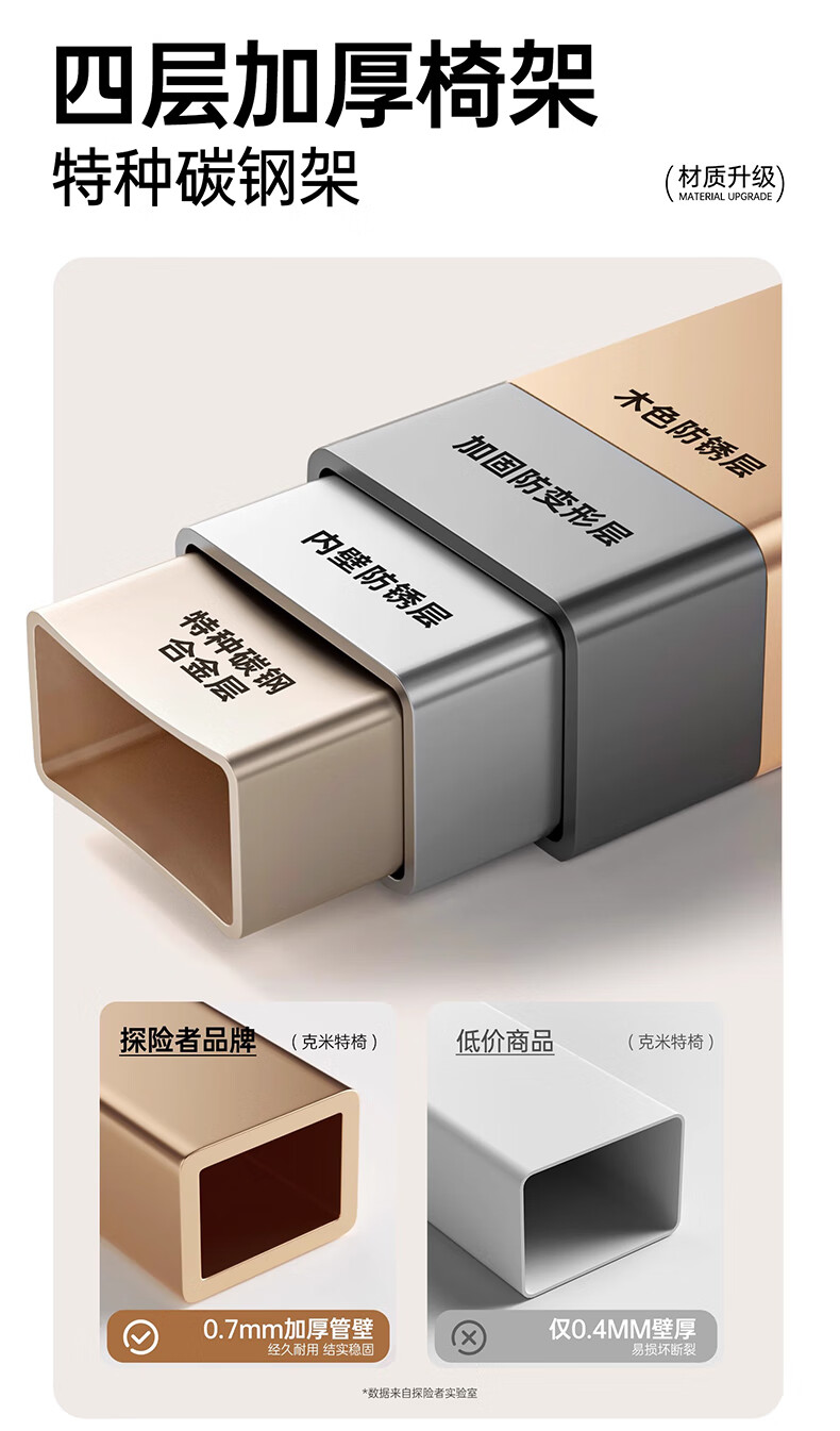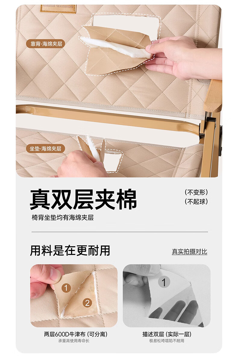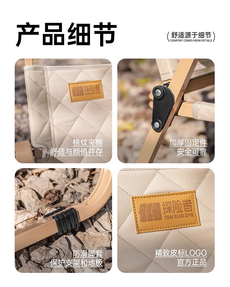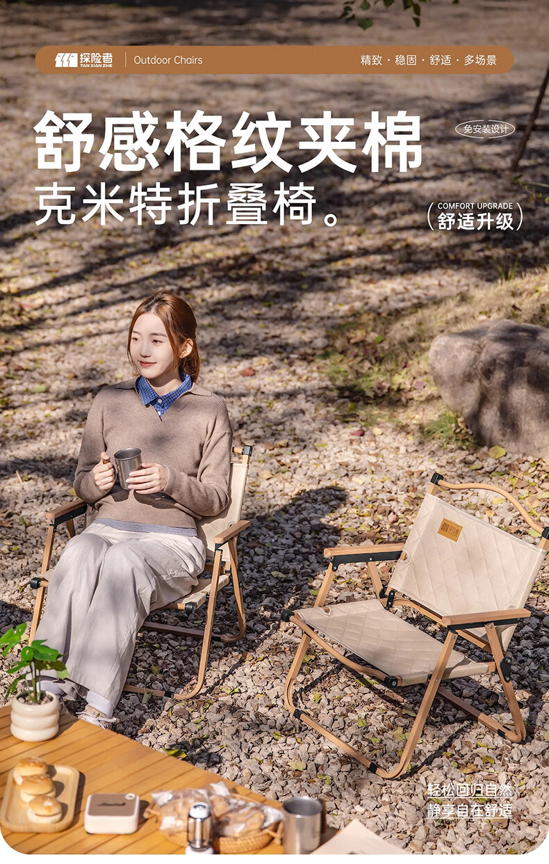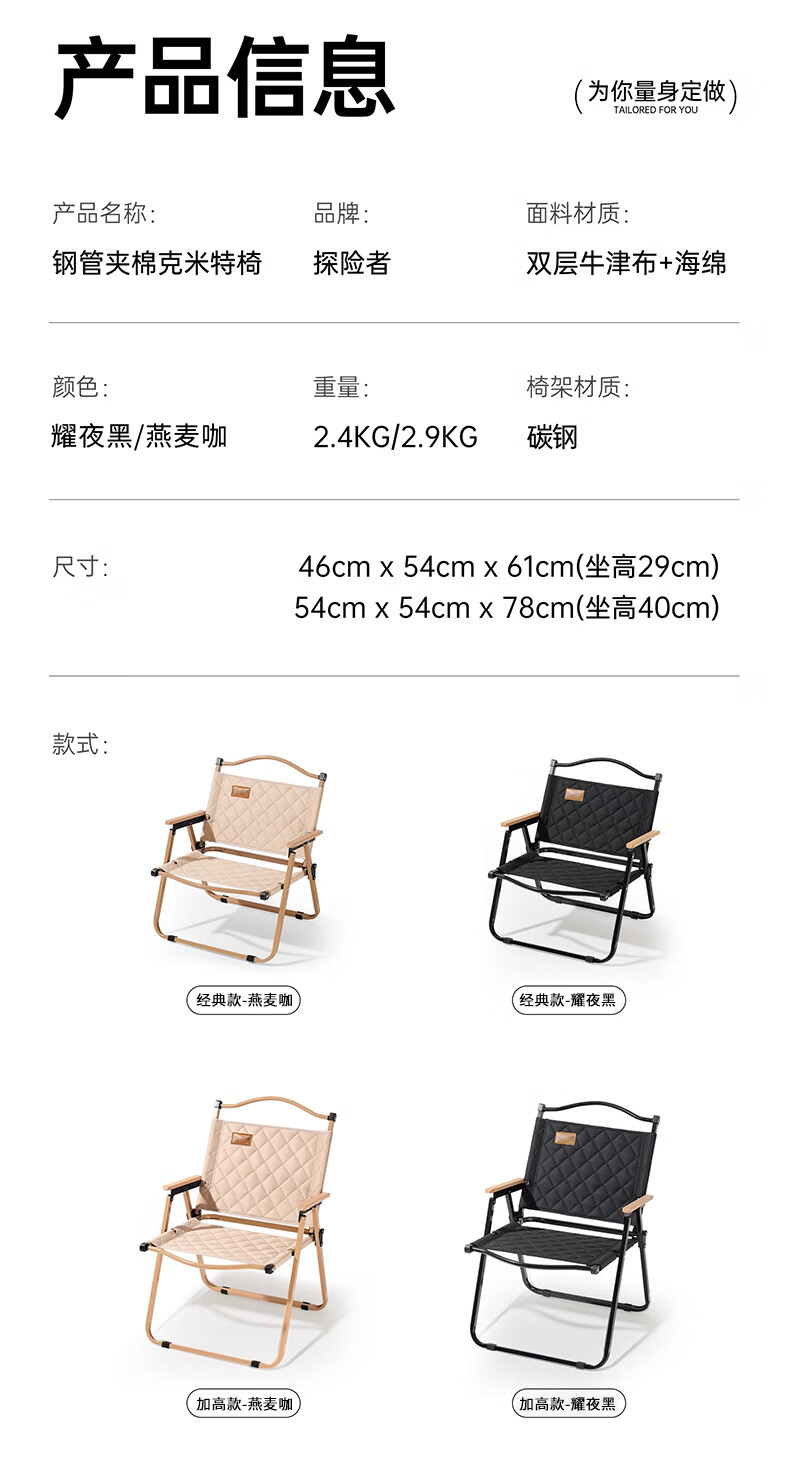 探险者户外折叠椅子克米特椅野餐椅便携沙滩椅钓鱼凳露营装备桌椅 【耀夜黑】夹棉经典款克米特椅