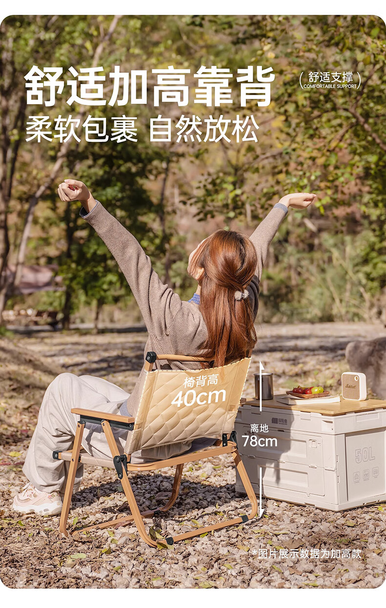 NatureHike挪客户外便携折叠椅 休靠背椅 旅游露营钓鱼休闲椅子超轻克米特椅 卡其色-小号