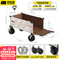 探险者露营车户外聚拢推车大容量快递车野餐车摆摊营地车便携野营旅行车 410L 银月白【越野万向轮+后开带拖斗】