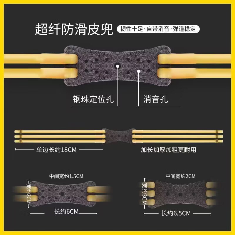 鬼爪弹弓皮筋强力扁皮加厚内穿弹弓配件卡球卡珠皮筋组 5付3卡6股皮筋组1745