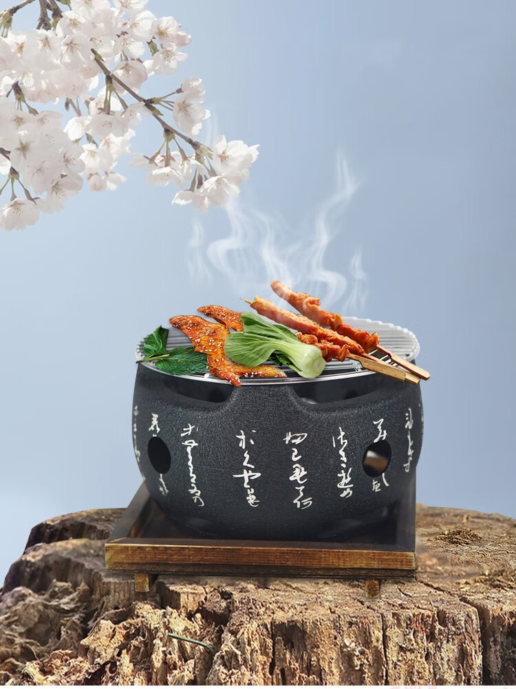木炭迷你烧烤炉炭火室内小炭烤炉一人食烤肉家用碳烤炉子小型 特大号烧烤炉+网