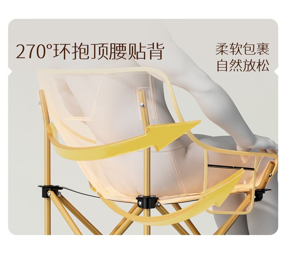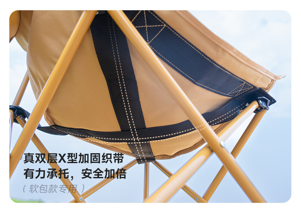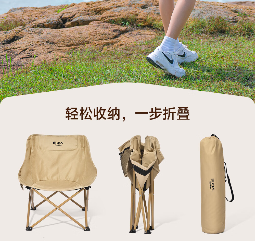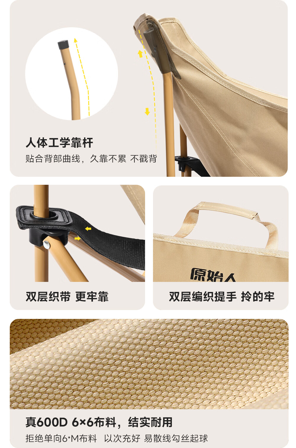 哇塞!原始人月亮椅简直是户外神器😍!它的框架是坚固的铝合金,承重力超棒。椅子展开很方便,坐上去软软乎乎,包裹感十足。周末带着它去露营,简直不要太快乐!
