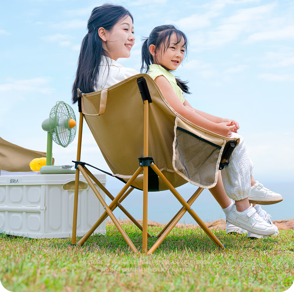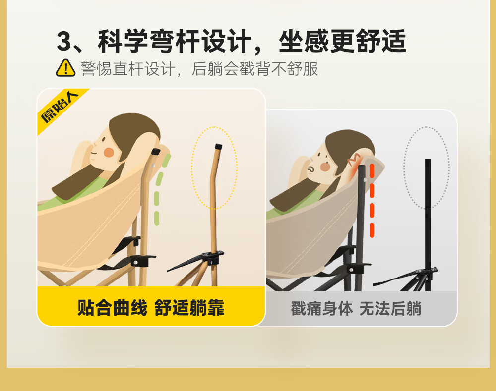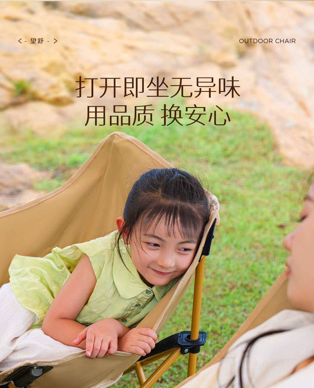 哇塞!原始人月亮椅简直是户外神器😍!它的框架是坚固的铝合金,承重力超棒。椅子展开很方便,坐上去软软乎乎,包裹感十足。周末带着它去露营,简直不要太快乐!