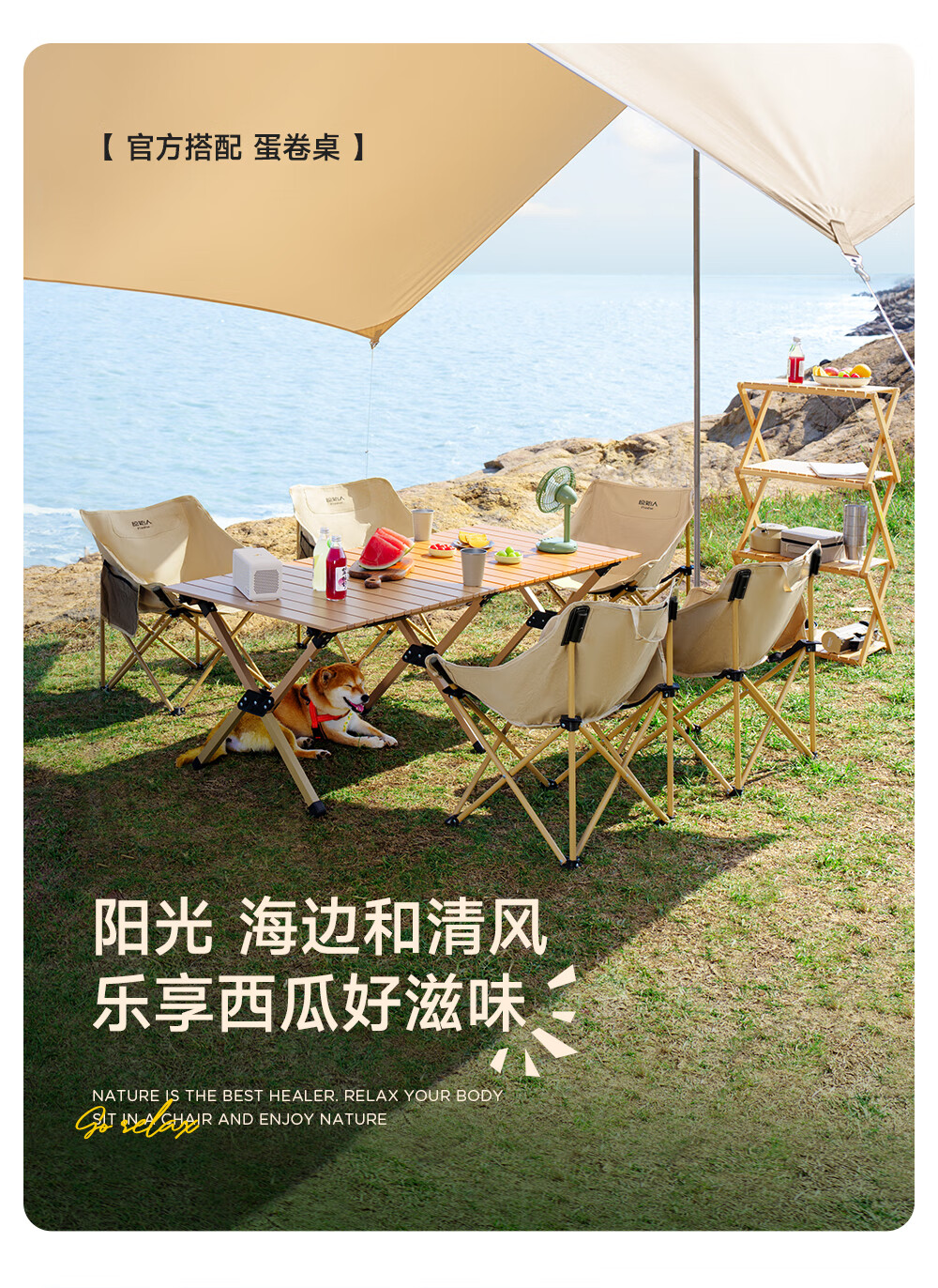 黑鹿(BLACKDEER)木纹铝合金蛋卷桌 户外露营折叠桌椅 便携式露营烧烤野餐折叠桌子 木纹蛋卷桌120款+宅宅椅玄米白*4