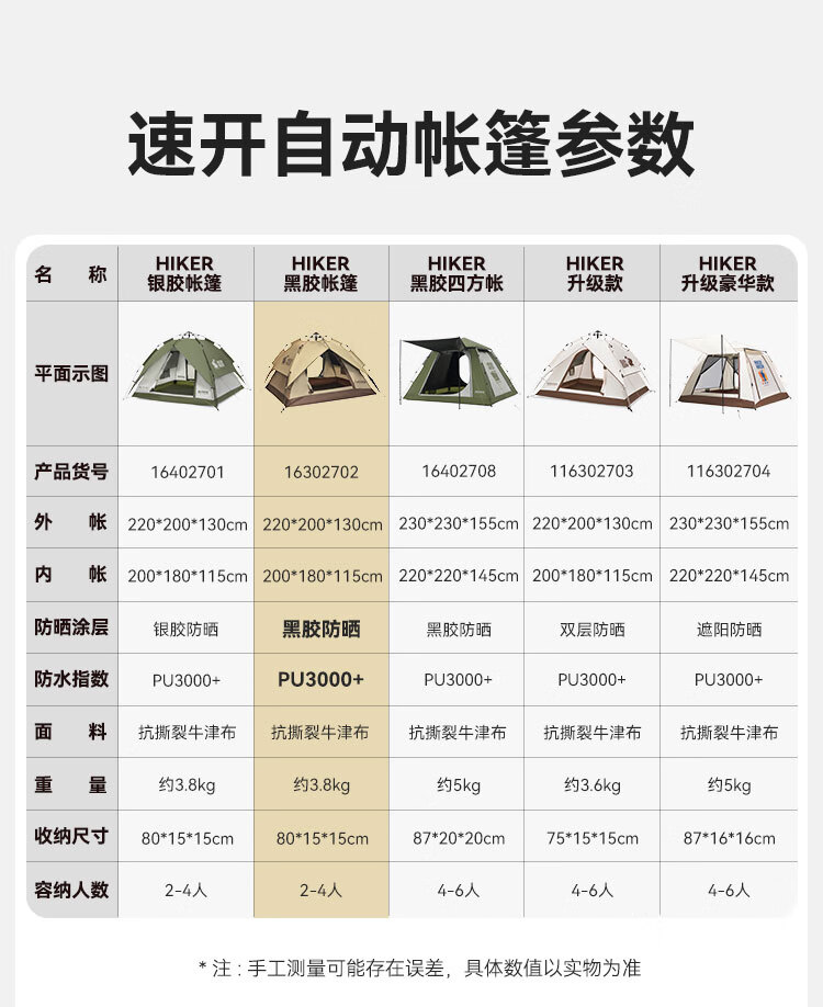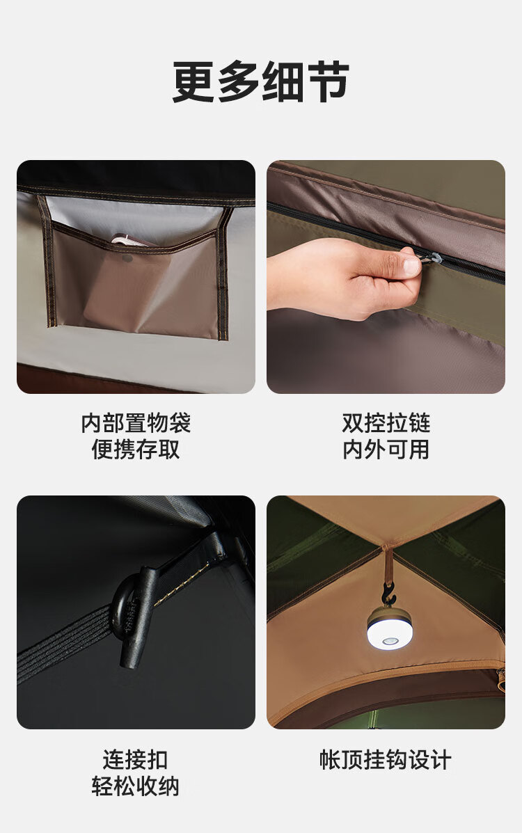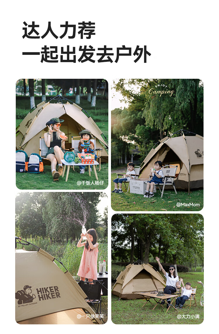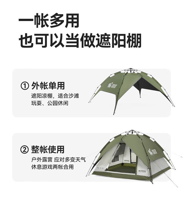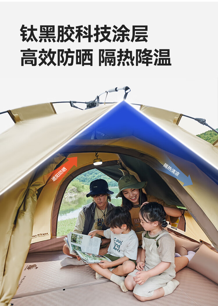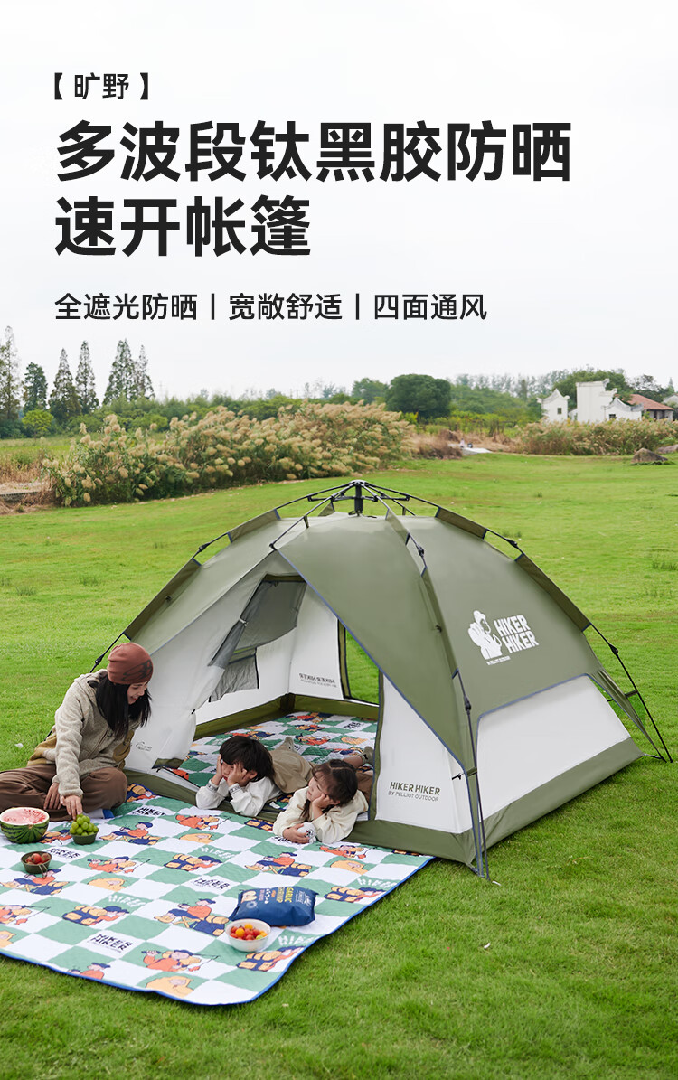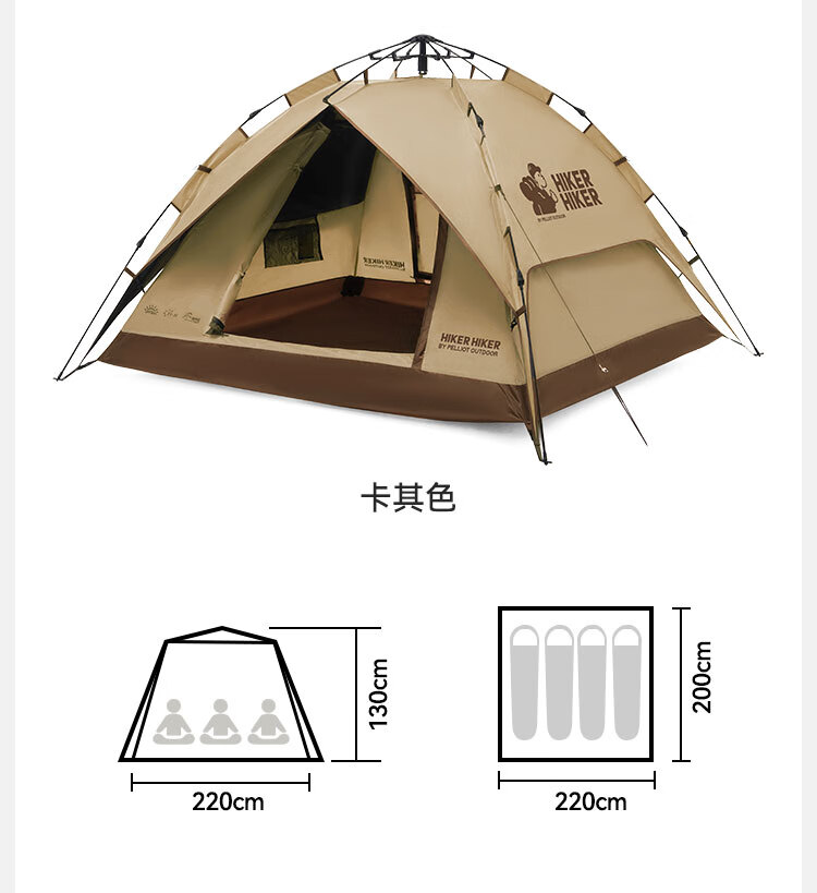 伯希和HIKER户外露营帐篷全自动速开专业野营帐黑胶遮雨棚16302702 upf50+ 卡其色