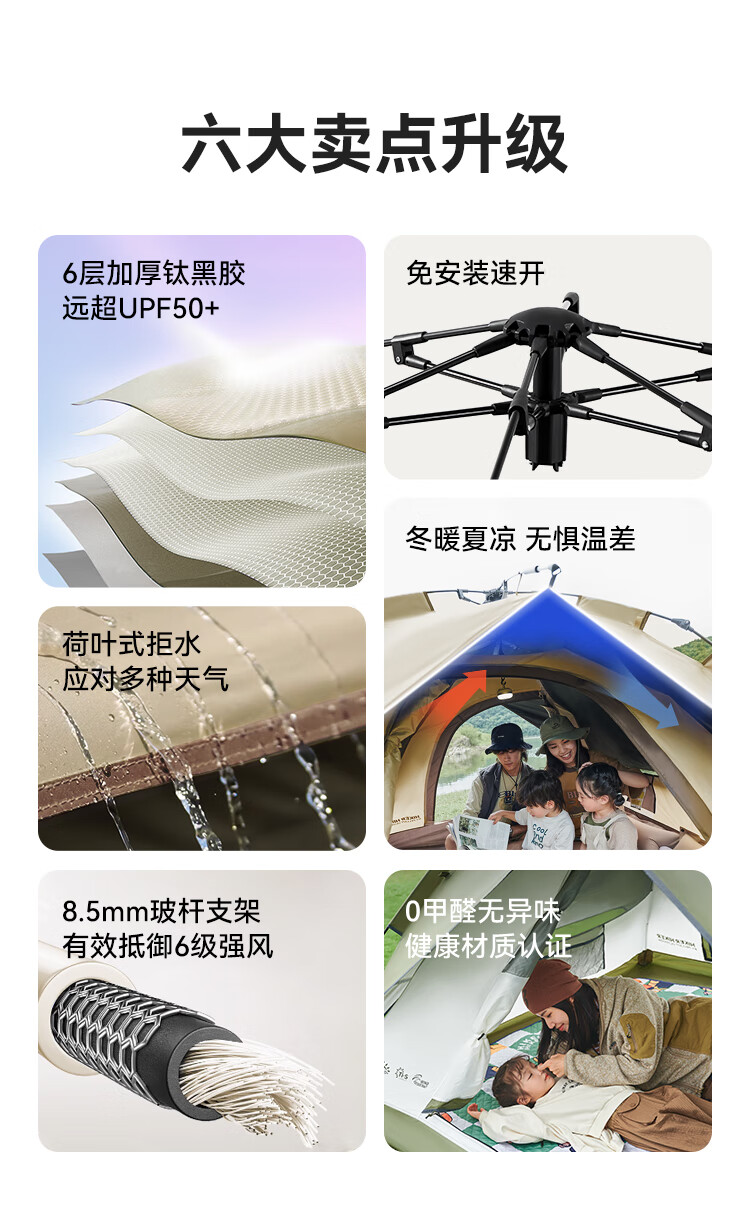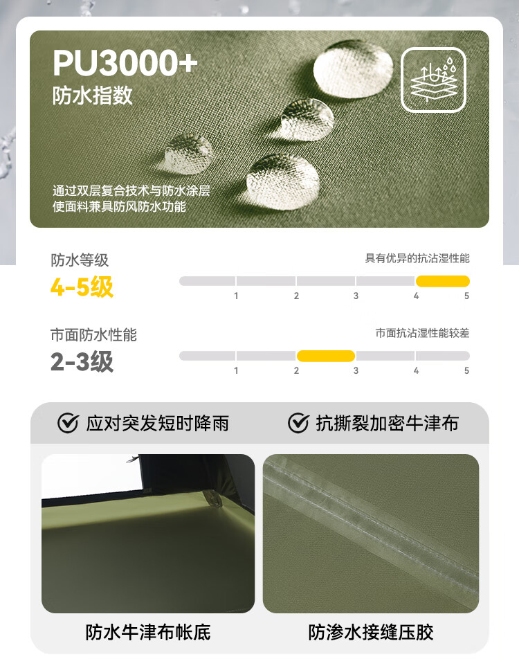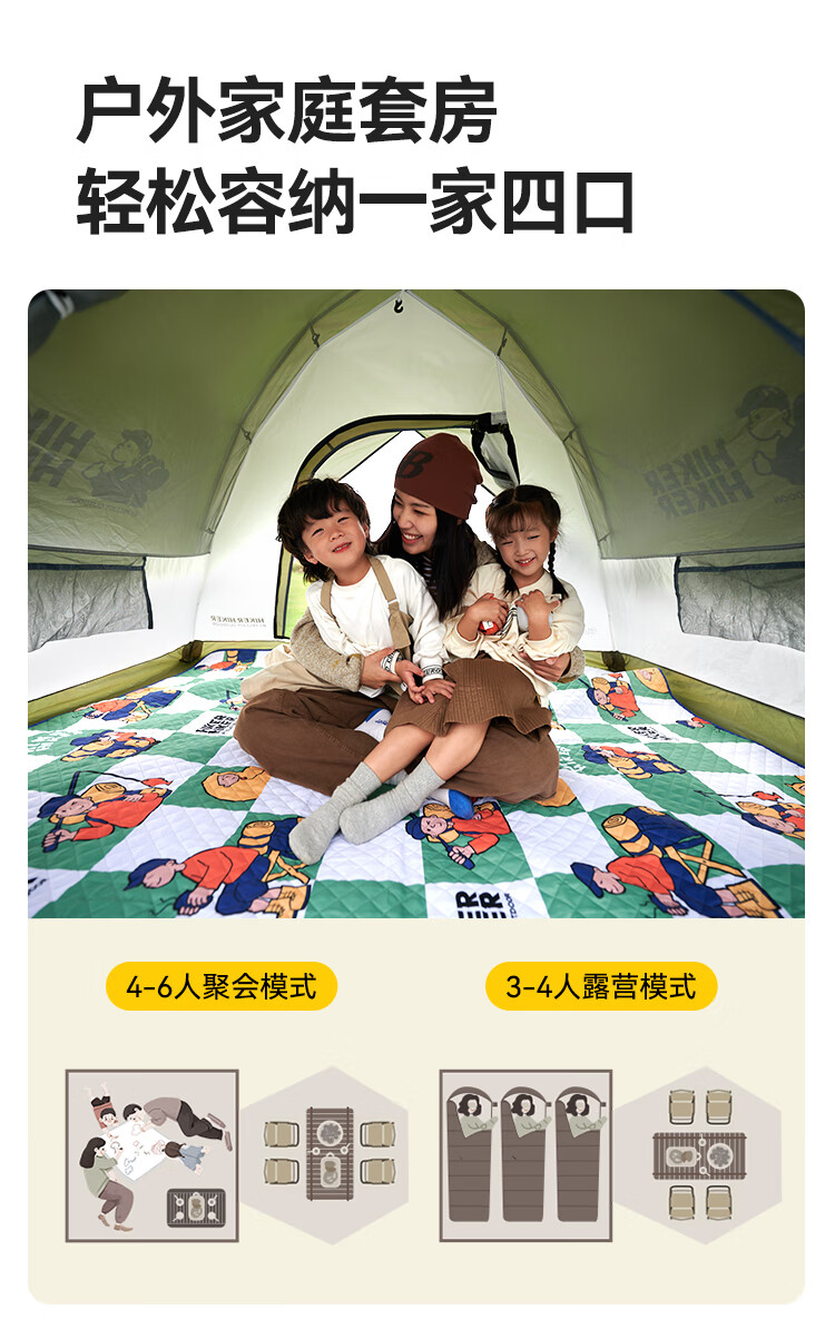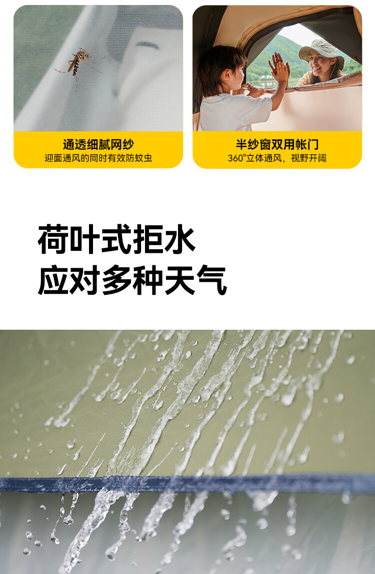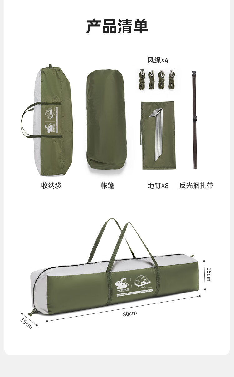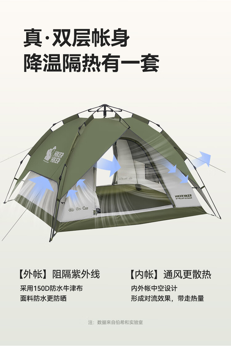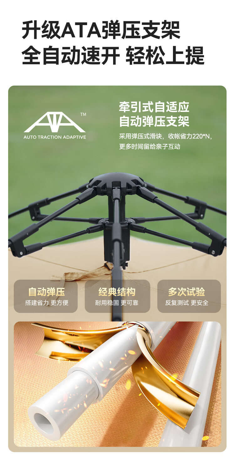 伯希和HIKER户外露营帐篷全自动速开专业野营帐黑胶遮雨棚16302702 upf50+ 卡其色