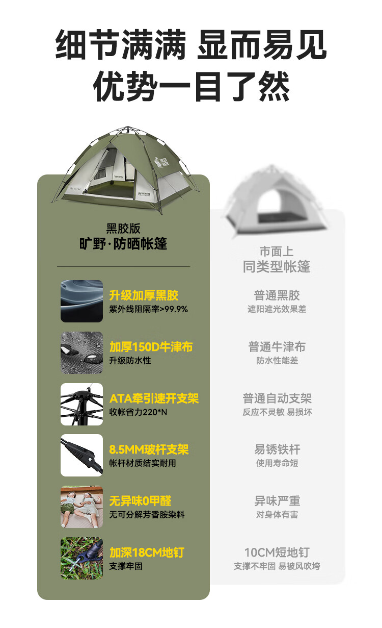 扉侣户外帐篷黑胶加厚全自动防雨郊游野餐可折叠露营野营防 银胶绿色大号 单个帐篷