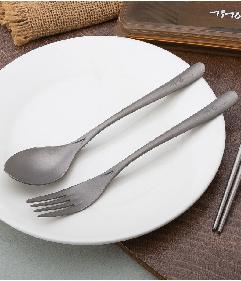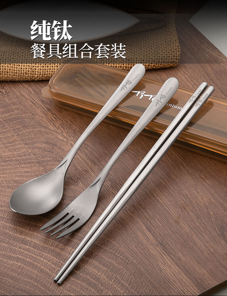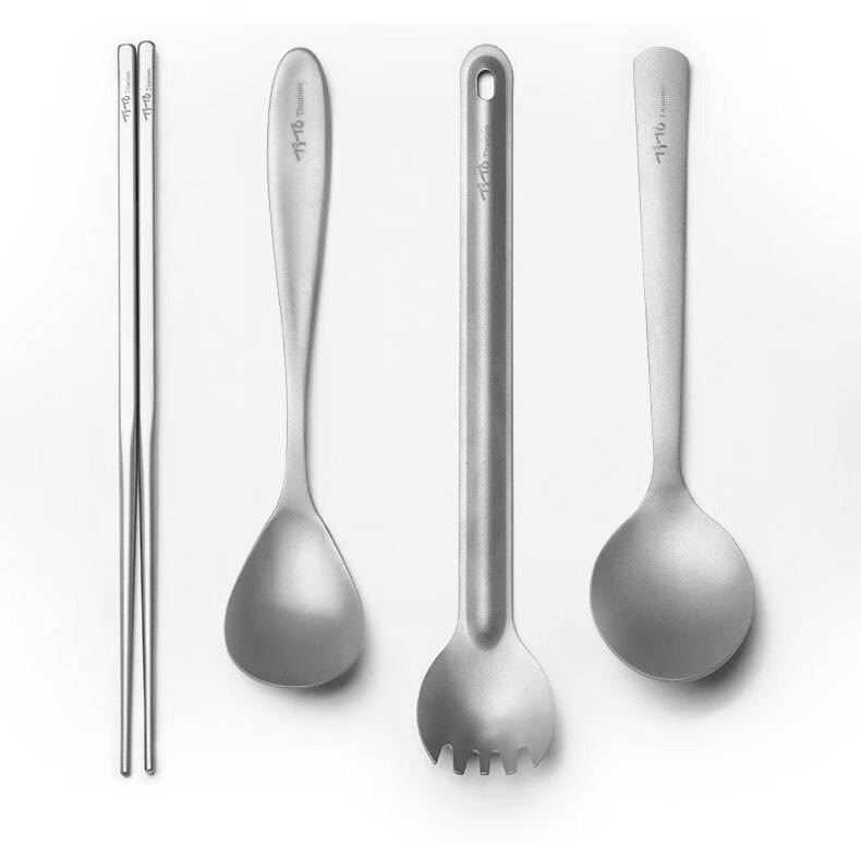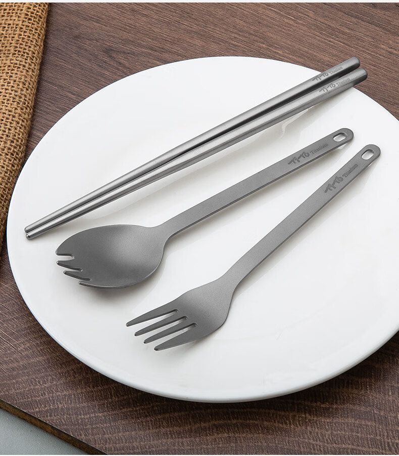 钛途(TITO TITANIUM) 纯钛筷子勺叉子套装99.5%钛合金野餐露营旅行户外用餐具便携轻便 纯钛筷子+户外叉勺#8