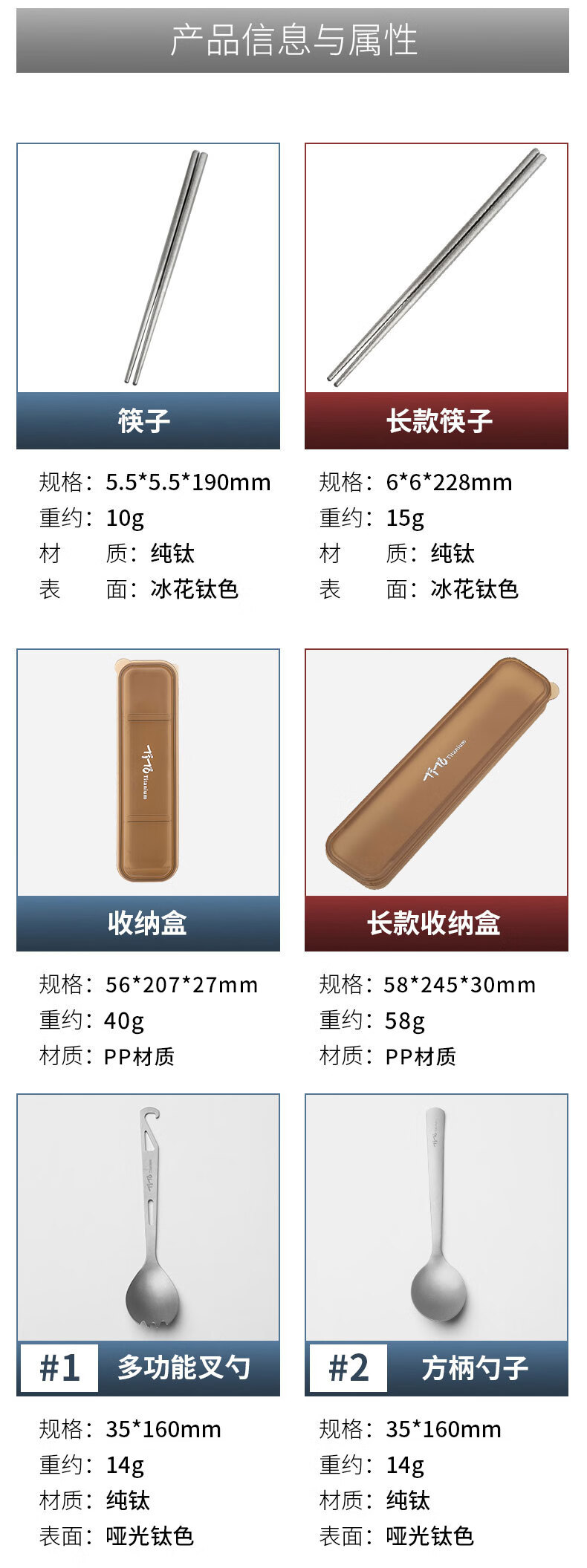 钛途(TITO TITANIUM) 纯钛筷子勺叉子套装99.5%钛合金野餐露营旅行户外用餐具便携轻便 纯钛筷子+户外叉勺#8,好轻好用,值得回购!!!!真是评价,非常棒,宝鸡出品。
