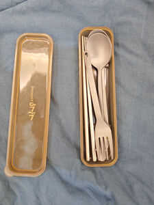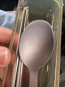 纯钛的筷子和勺子的套装,是空心的,很轻便,用起来不会有压手感,很轻巧。还送了一个塑料的餐具盒子,可以把筷子和勺子一起装起来,非常方便携带,很方便,有盒子餐具就不用放在外面,很好。