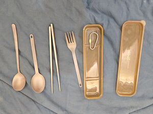 钛合金刀叉🍴早己经收到,东西做工精致,一物两用,加上筷子,露营必备神器,品牌商品,质地杠杠的,天气凉快了,外出体验,满意👍