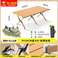 Aoran户外折叠桌碳钢蛋卷桌轻量便携露营桌椅野餐装备用品庭院喝茶桌椅 150cm蛋卷桌+收纳包