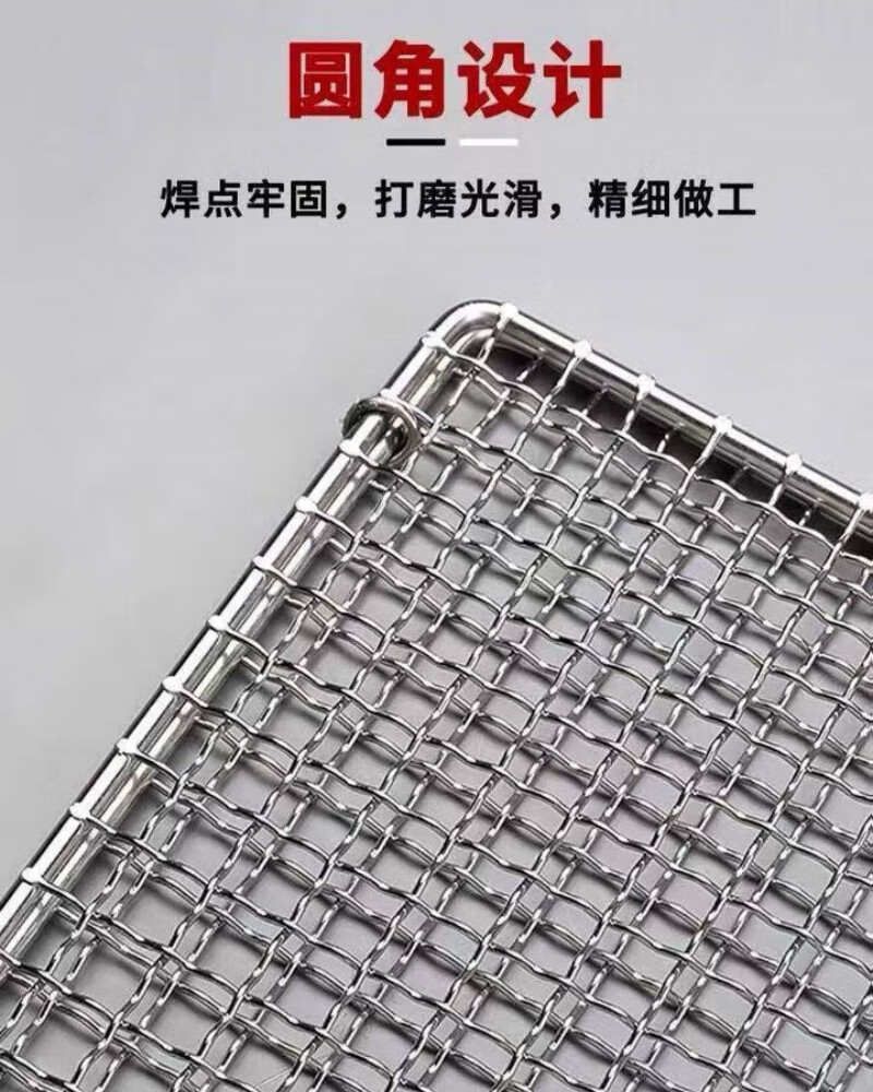 强泽网业304不锈钢圆形烧烤网架带把手篦子加粗网格户外家用商用烤肉定制 直径16.5厘米带把手