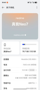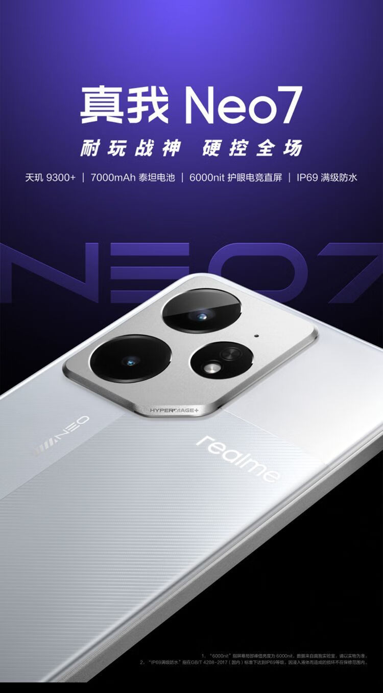 真我展机真我Neo7 天玑9300+旗舰芯7000mAh电池游戏智能游戏手机 陨石黑 16GB+256GB 单机+品牌快充+店保一年