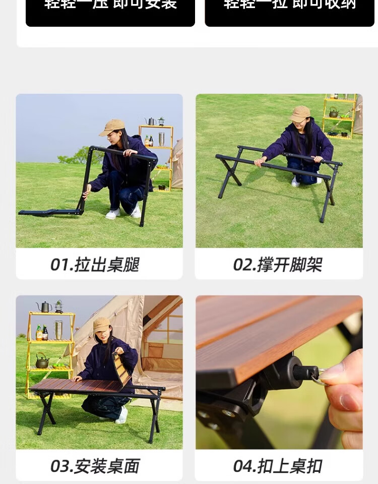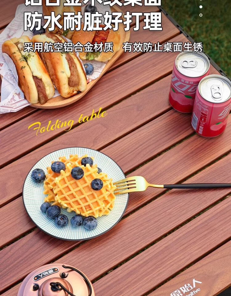 这个原始人的蛋卷桌子,买的非常满意。安装很方便。用料也很扎实。1米2的长,60cm的宽。一般几个人露营足够了。桌面清洁也比较方便。一般的污渍轻轻擦掉即可。