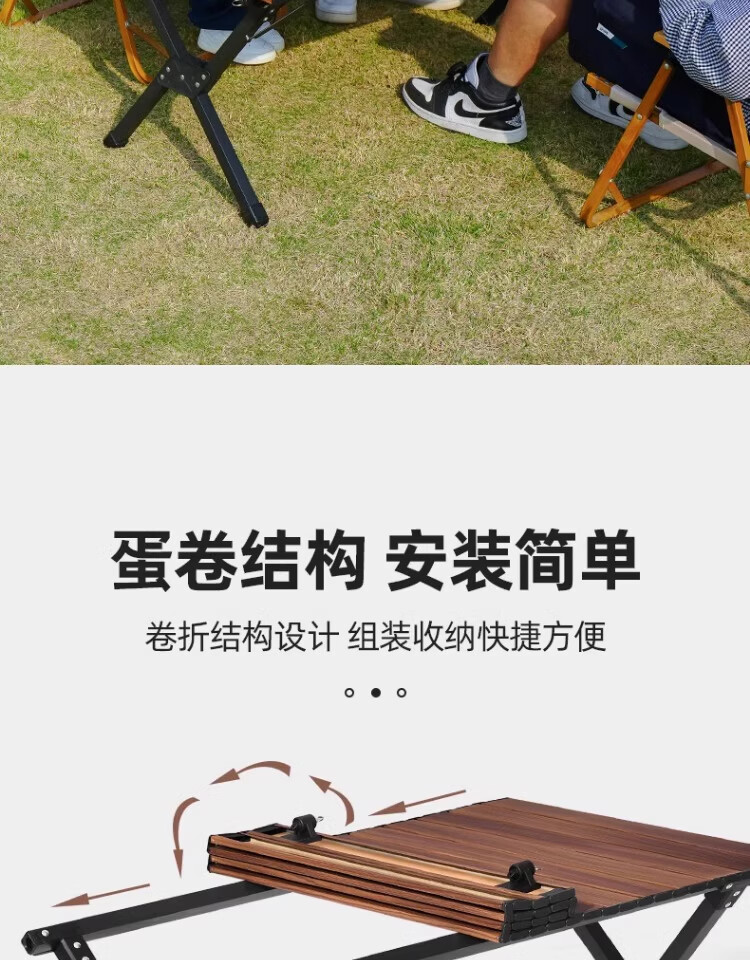 榉木蛋卷桌露营桌椅户外折叠加厚桌子套装野餐野炊装备全套可拆卸 【升级铝合金材质】中号90cm榉木蛋卷桌
