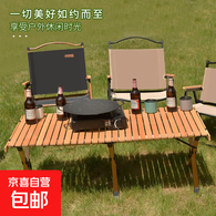 原始人折叠椅户外折叠椅子米特椅野餐椅便携桌椅钓鱼凳露营椅子 90款木纹双面铝合金蛋卷桌配收纳袋