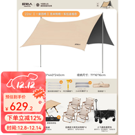 原始人天幕帐篷户外桌椅遮阳防晒防雨便携露营黑胶野营棚新型野餐大蝶形 22㎡天幕精致露营克米特椅全套