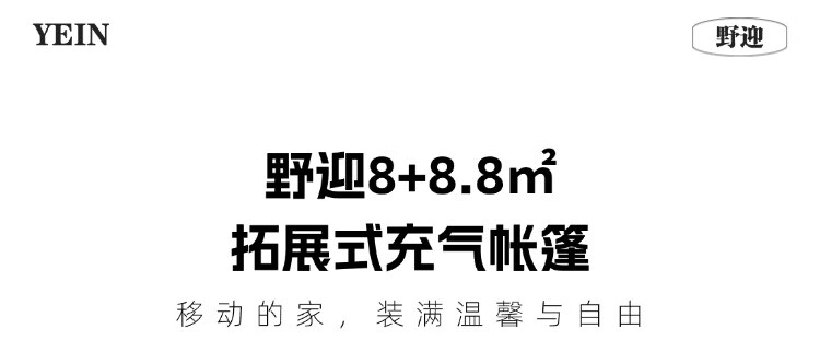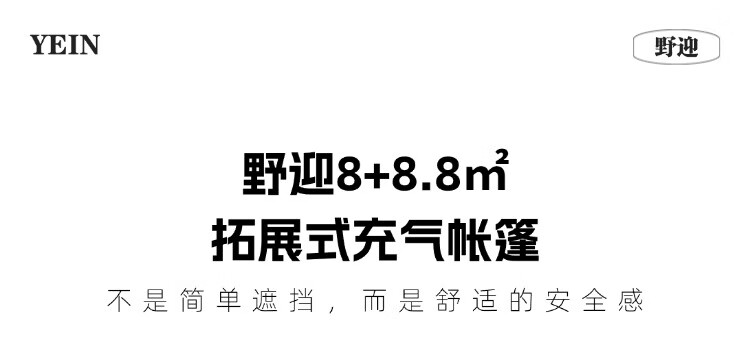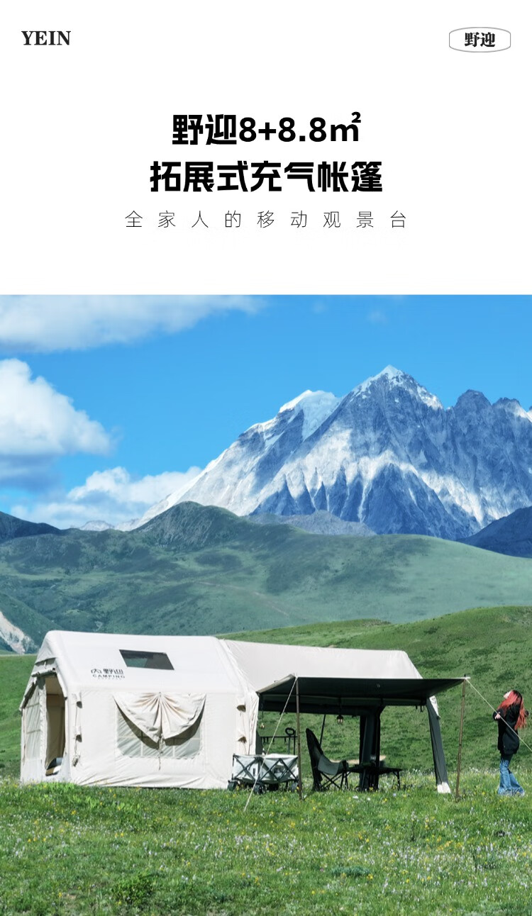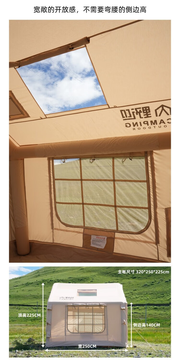 野迎8+8.8㎡pro营地充气帐篷春夏户外露营过夜装备一室一厅防雨帐篷 黑色 天幕杆款全套