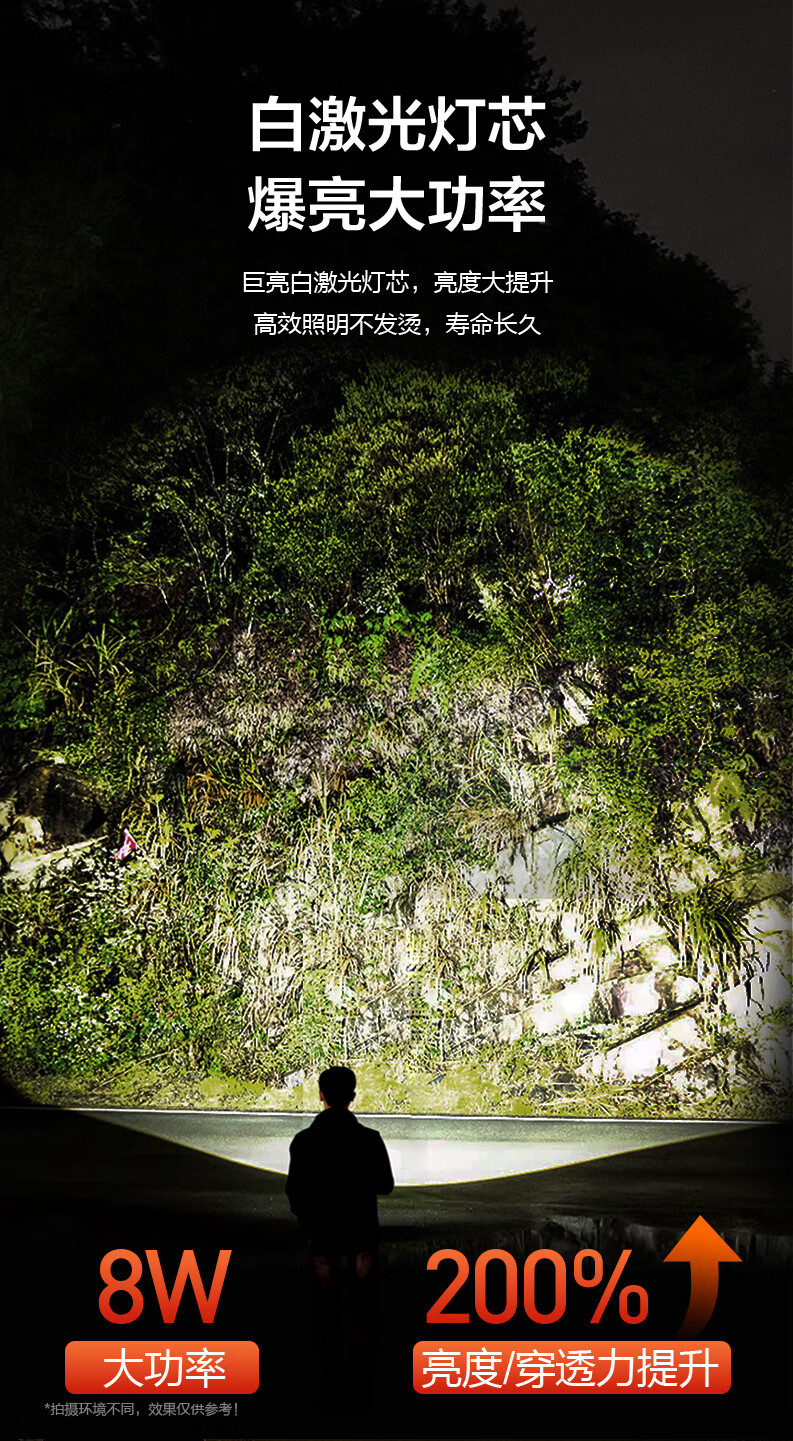 非常满意,射程很远,亮度对比如同白昼,续航能达到最长时间,做工精致,材质好有分量,握在手小巧玲珑。