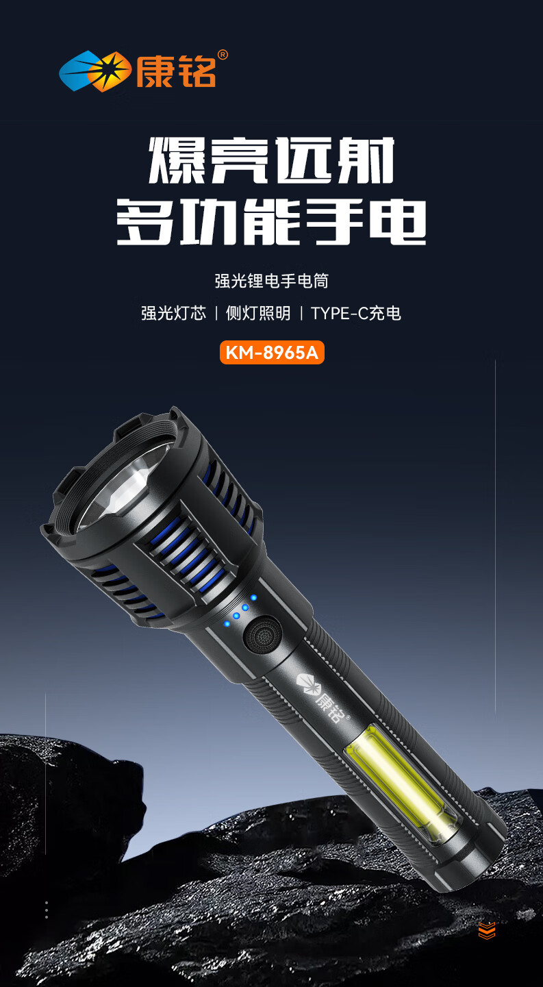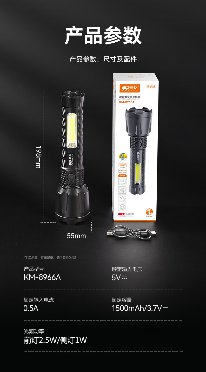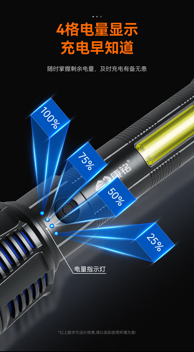康铭伸缩聚焦手电筒强光led充电家用照明户外超亮手电超长续航应急灯 伸缩变焦+电量显示+激光灯珠+3000mAh+10W+LV005