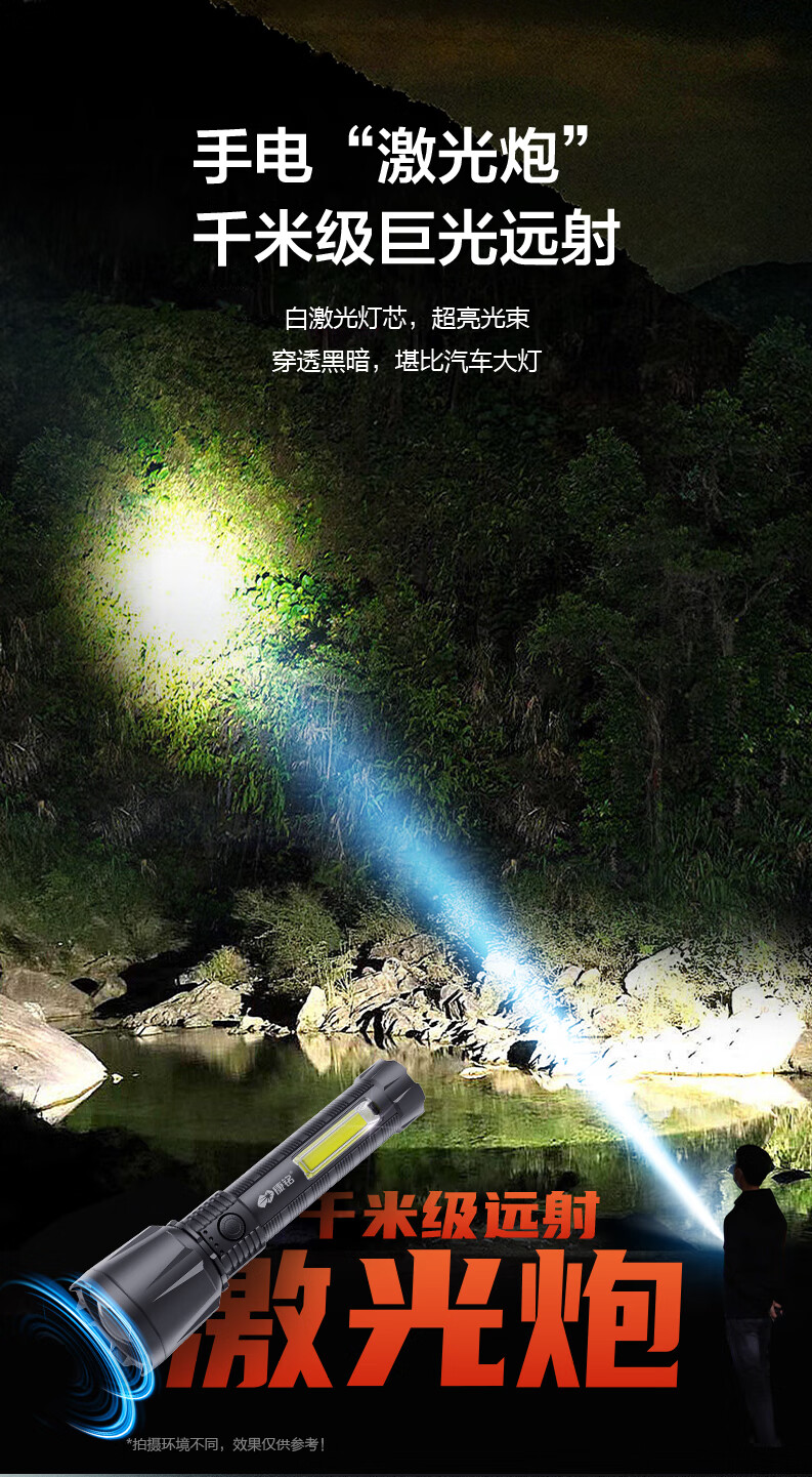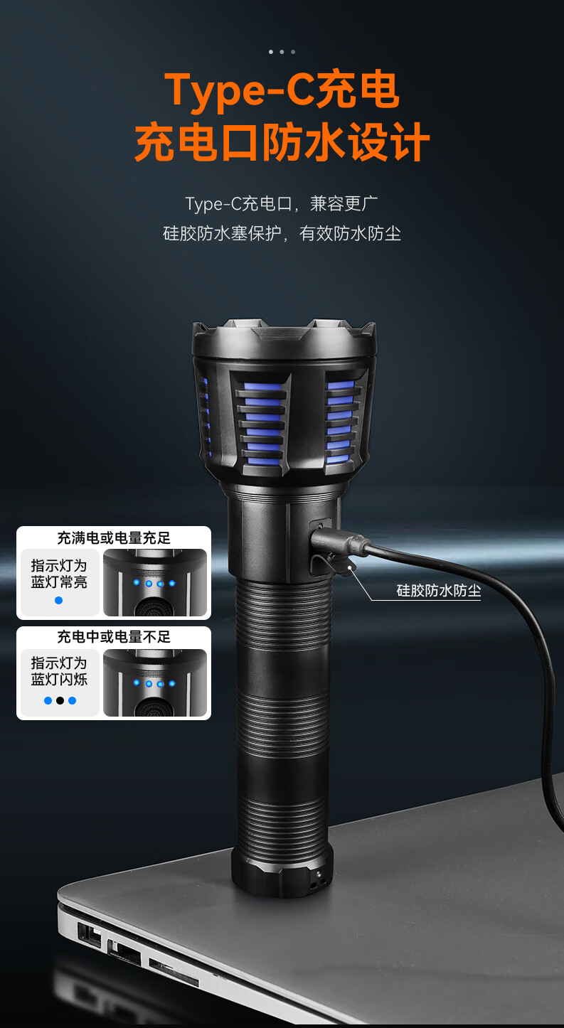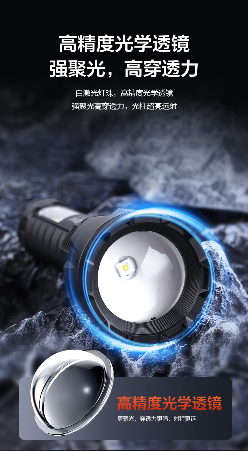 46950手电筒激光炮强光可充电超亮夜行远射大容量疝气灯家用照明 尊享六锂电丨三光T10芯丨加大加容六锂电 礼盒款镭射炮机械变焦合金机身