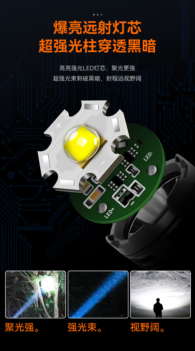 古慕妮金属小型便携式强光超长续航野外生存家用大功率户外爬登山 91A光灯芯-液晶电显-单锂电